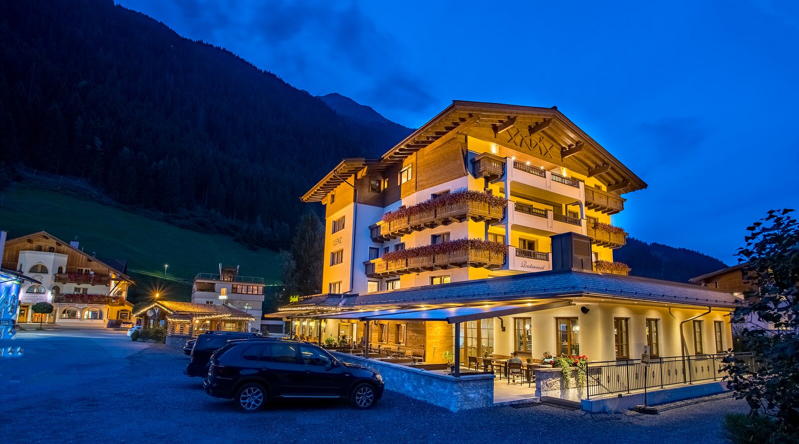 Vom Bett direkt hoch auf die Berge. Beim Besuch im Hotel Lenz ist man mittendrin im Ort und nur ein paar Schritte von der Bergbahn See entfernt, die einen in Windeseile hoch auf die Gipfel bringt. Im Sommer erkundet man die Berge zu Fuß oder mit dem Bike. In der kalten Jahreszeit erlebt man herrliche Wintermomente auf- und abseits der Pisten. Und drinnen im Haus findet man Geborgenheit und Geselligkeit. Dafür sorgt die Gastgeberfamilie und das nette Team genauso wie die gemütlichen Zimmern und Suiten. Im Wirtshaus, im Restaurant, in der urigen Stube, aber auch draussen auf der großen Terrasse oder in der Bergrauschhütte setzt man sich gerne zusammen und lässt es sich gut schmecken. Gekocht wird Tirolerisch traditionell. Und wer den Urlaubstag ganz entspannt ausklingen lassen mag, der findet den perfekten Platz in der Vitalwelt „Tiroler Bergfrische“.Wirtshaus Öffnungszeiten Gekocht wird täglich bis 21 Uhr Wochentags ab 11 Uhr, an Sonn- und Feiertagen ab 10 Uhr