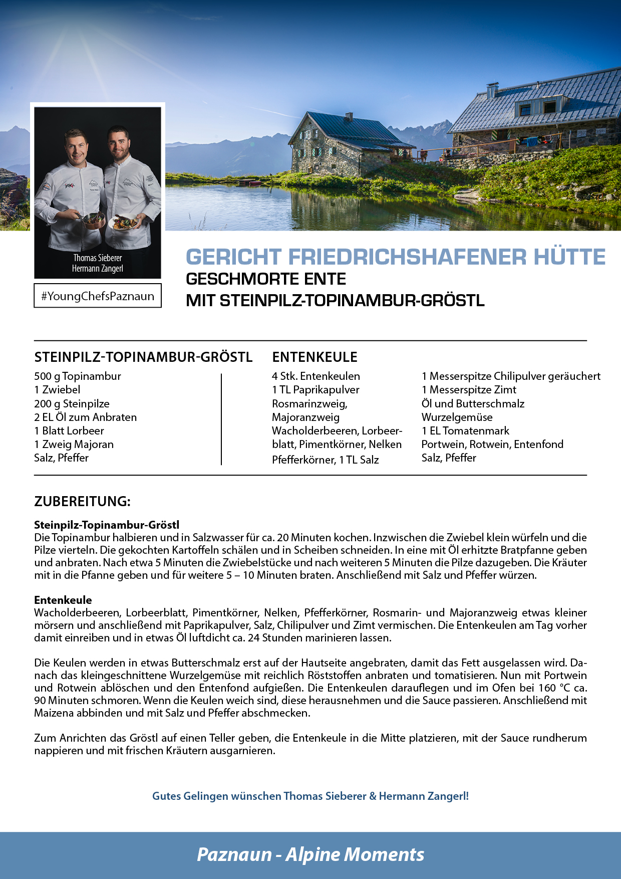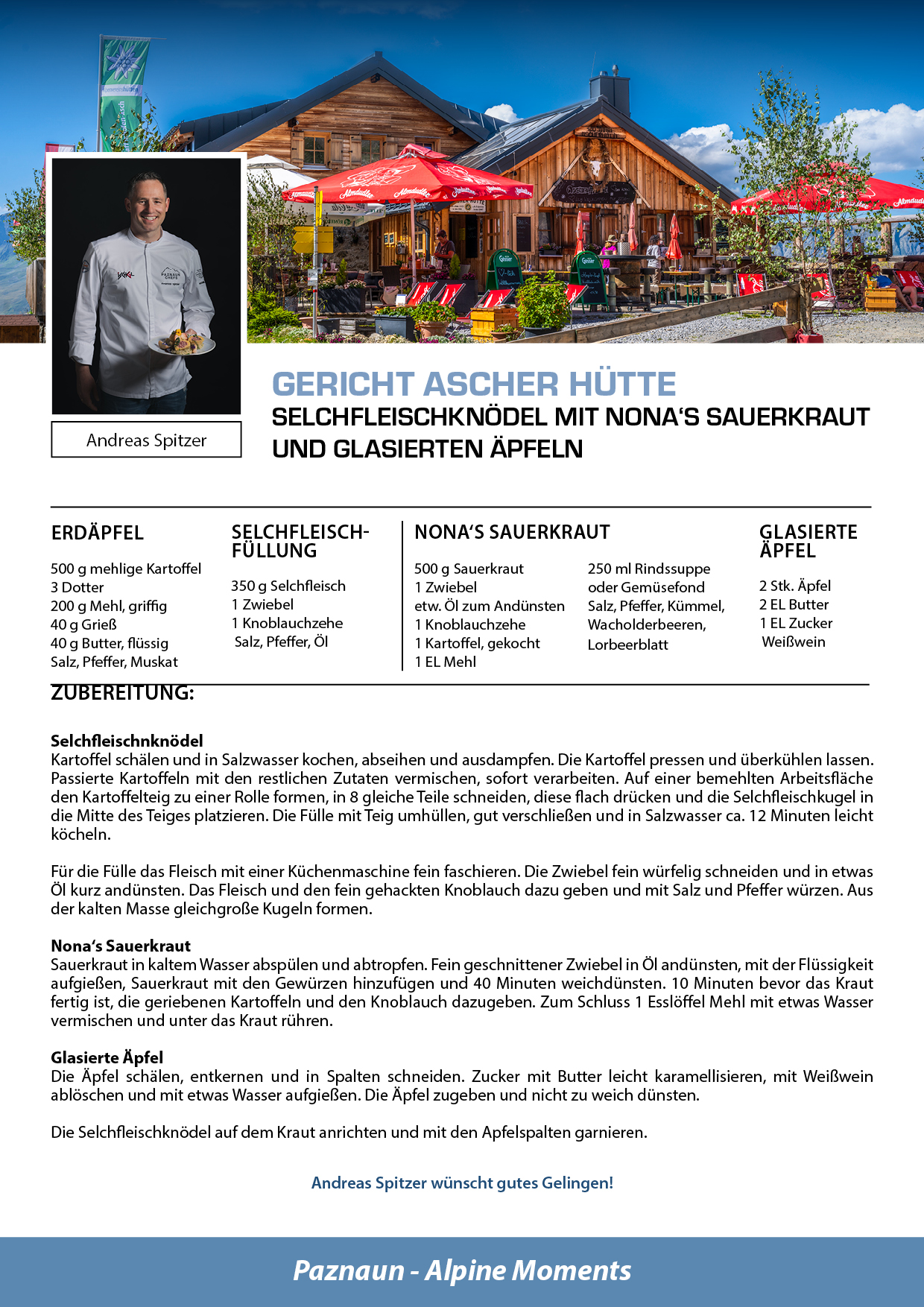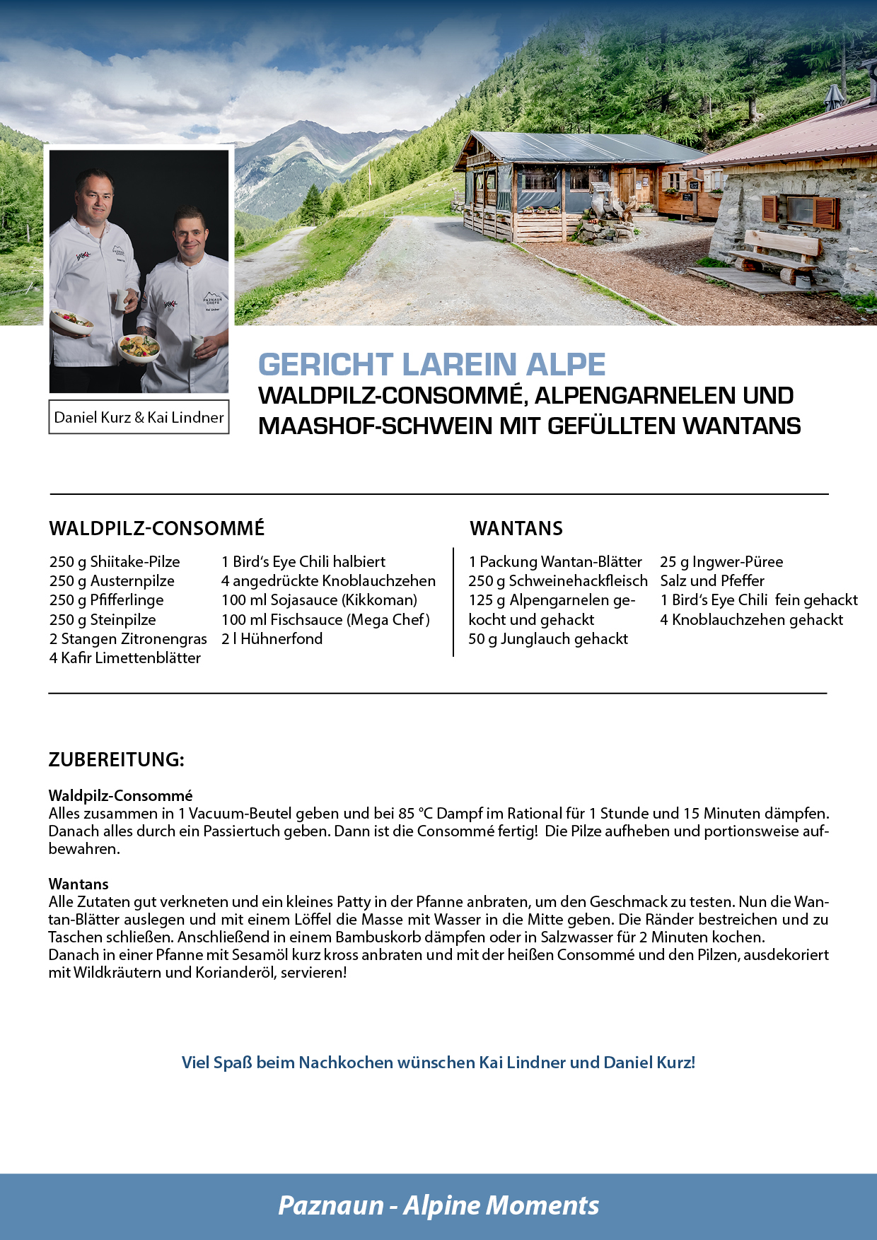 Bei den Hüttenfesten übernehmen sieben Gourmetköche und die #YoungChefsPaznaun die Patenschaft für jeweils eine Hütte und präsentieren ein besonderes Sommergericht, hergestellt aus hochwertigen, regionalen Zutaten. Diese kulinarischen Kreationen sind den ganzen Sommer über in den jeweiligen Hütten verfügbar – ein absoluter Genuss!