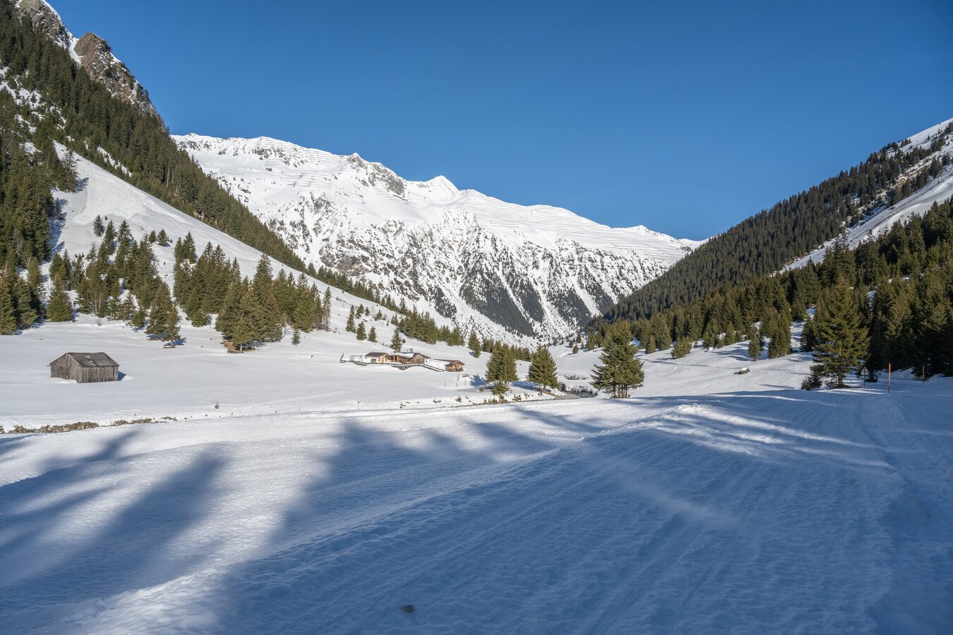 Der Winterwanderweg Sesslad führt dich über die Schneebrücke zur unteren Sessladalpe, einem wunderschönen Aussichtspunkt.