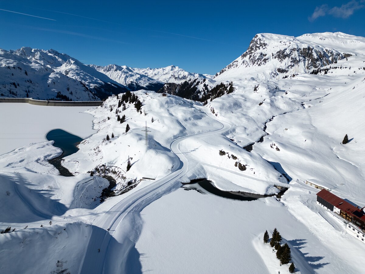 Diese 18 Kilometer lange Winterwanderung ist zwar anspruchsvoll, aber die atemberaubenden Bergpanoramen und tief verschneiten Landschaften lassen dich die Anstrengungen schnell vergessen. Auf der sonnigen Bielerhöhe (2.037 m) mit dem beeindruckenden Silvrettastausee wird das Genießen einfach. Die Tour startet in Wirl, bei der Talstation der Birkhahnbahn. Nach 9 Kilometern erreichst du die Bielerhöhe.