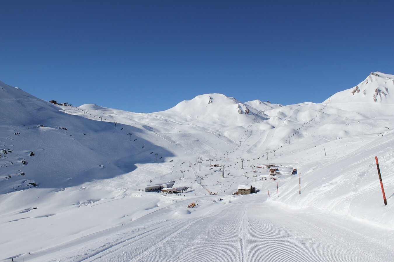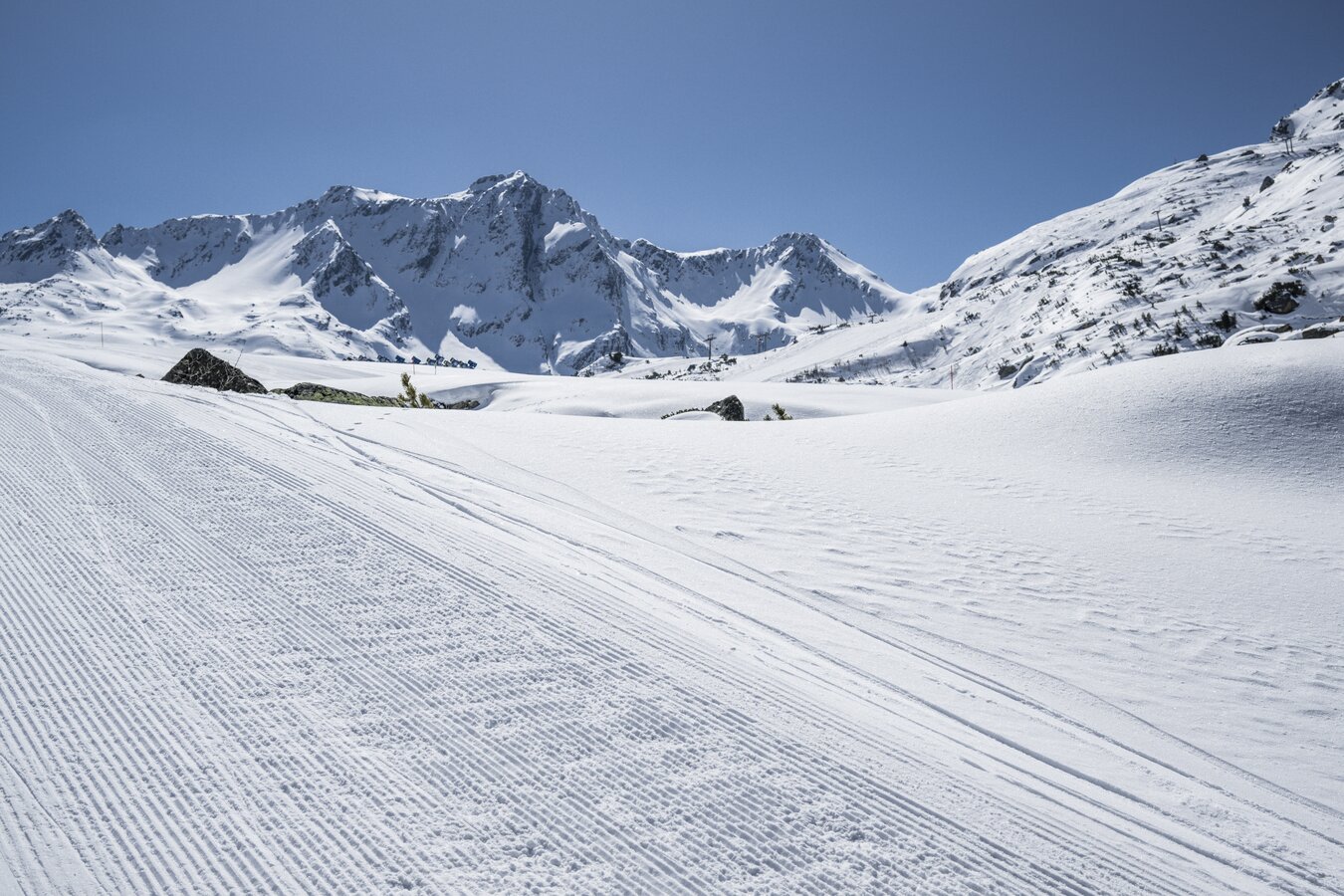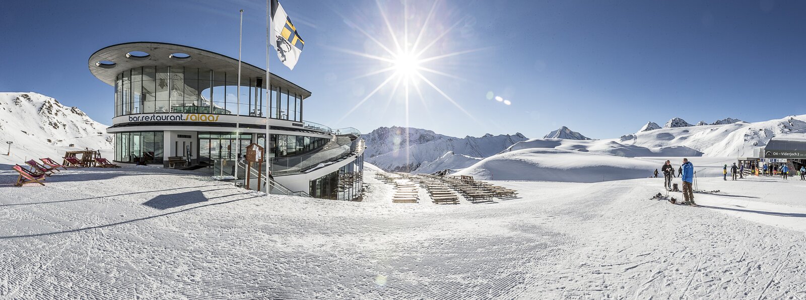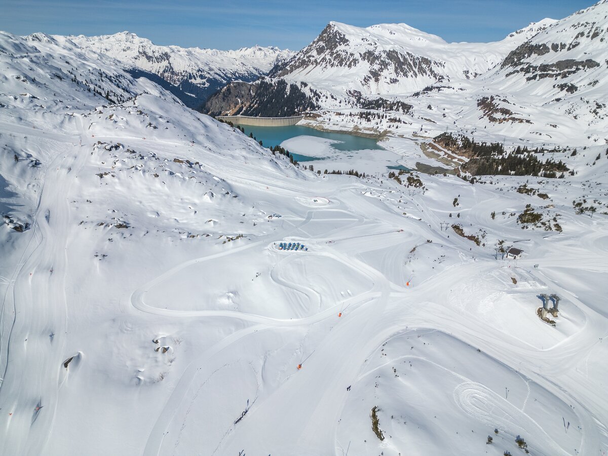 Weiter geht es mit der Flimjochbahn zum Viderjoch auf 2.700 Metern, der Grenze zwischen Österreich und der Schweiz. Danach bringt dich die Flimsattelbahn zur Alp Trida. Von dort erreichst du zu Fuß die Alp Trider Sattelbahn. Mit der Pendelbahn (L1/L2) geht es nach Samnaun zum Einkaufen.