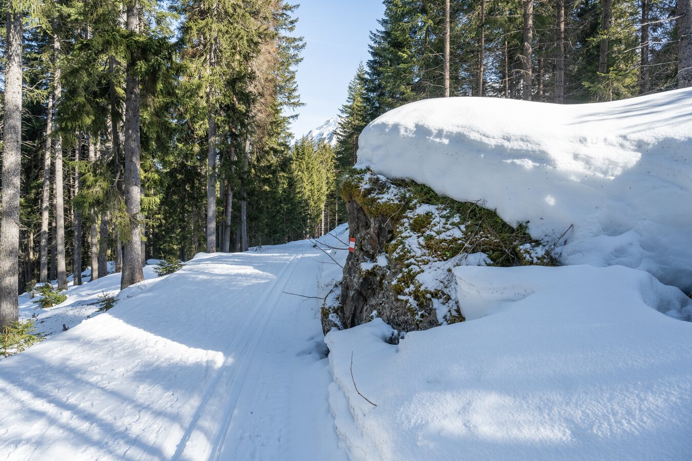 Der Weg verläuft zum Teil auf Langlaufloipen – bitte am Loipenrand gehen.