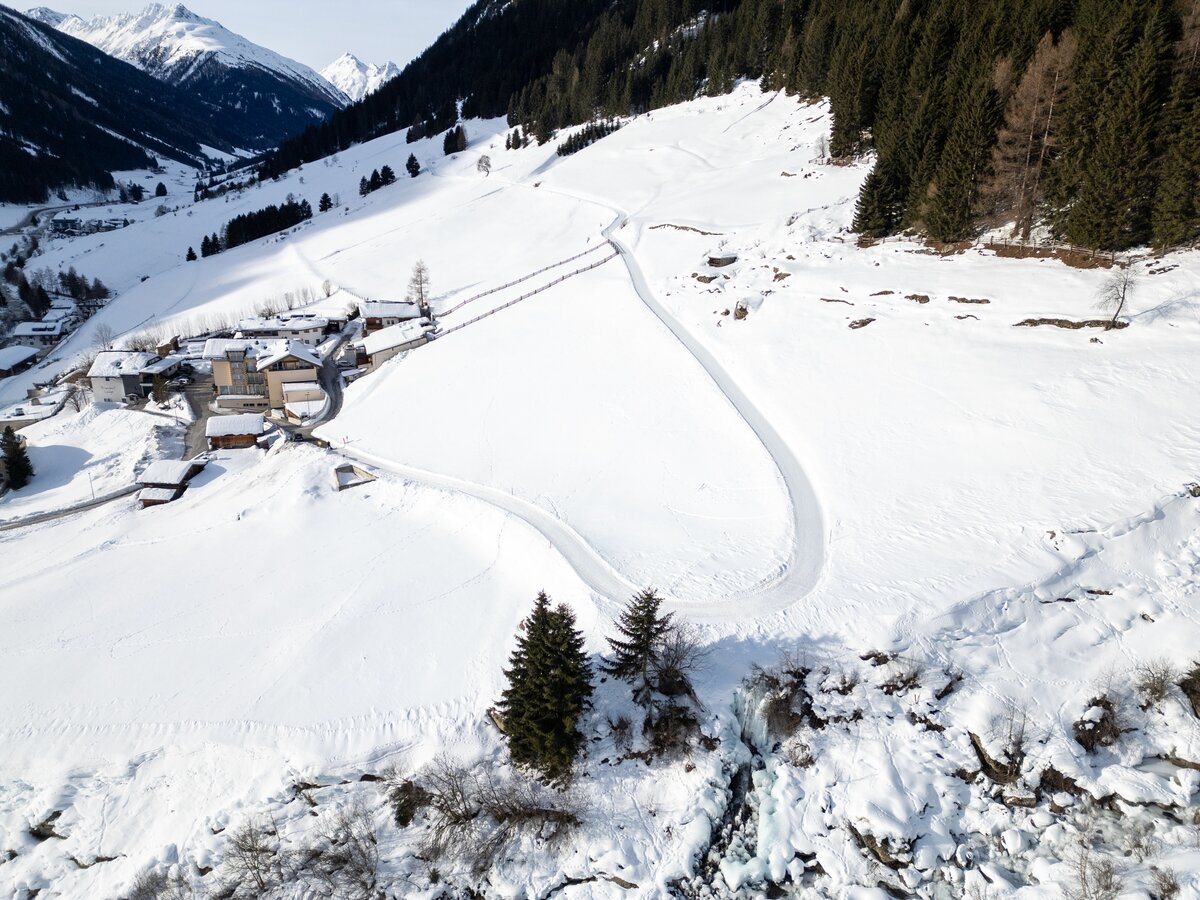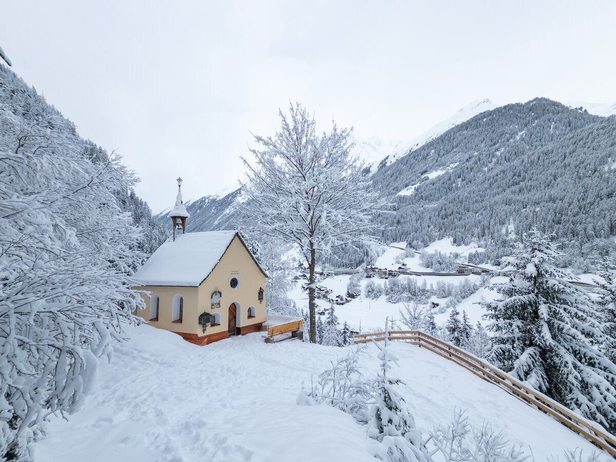 Die Winterrundwanderung beginnt am Dorfplatz in Galtür und führt dich flach entlang der Trisanna bis zum Weiler Tschafein. Weiter geht es am Gehsteig zum Haus „Rifugio“ und ein kurzes Stück entlang der Bundesstraße, bevor der gewalzte Winterwanderweg links abzweigt. Du wanderst durch das Waldgebiet oberhalb der Straße, gelangst zum Wildpark am Valzurbach, und nach einer kurzen Steigung erreichst du die romantische Waldkapelle. Die neun Kilometer lange Wanderung erfordert etwas Kondition, bietet aber beeindruckende Ausblicke auf die Ballunspitze.