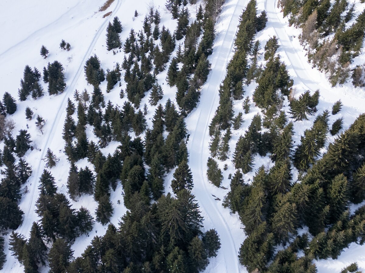 Eine kleine Runde durch den verschneiden Motnaida-Wald in Samnaun Dorf.