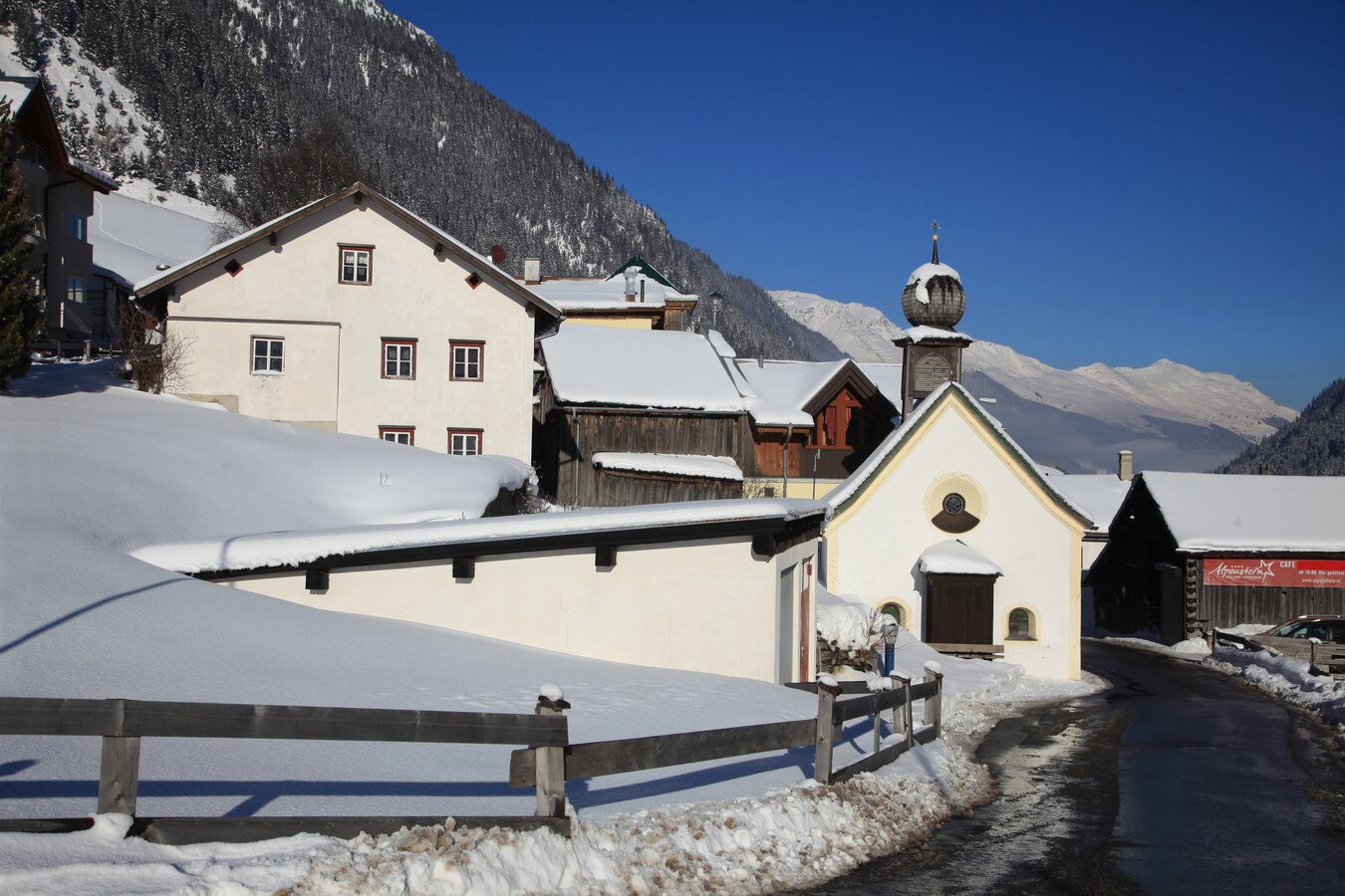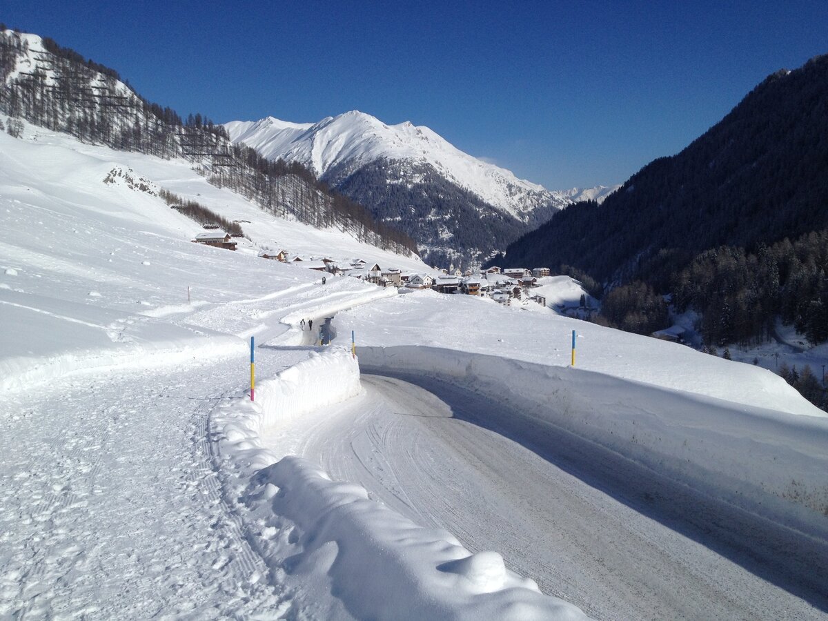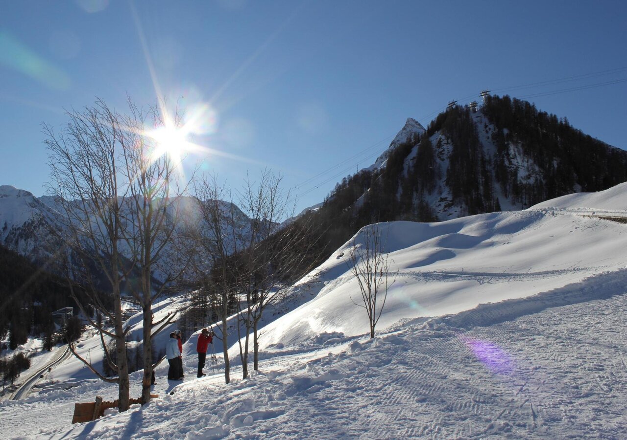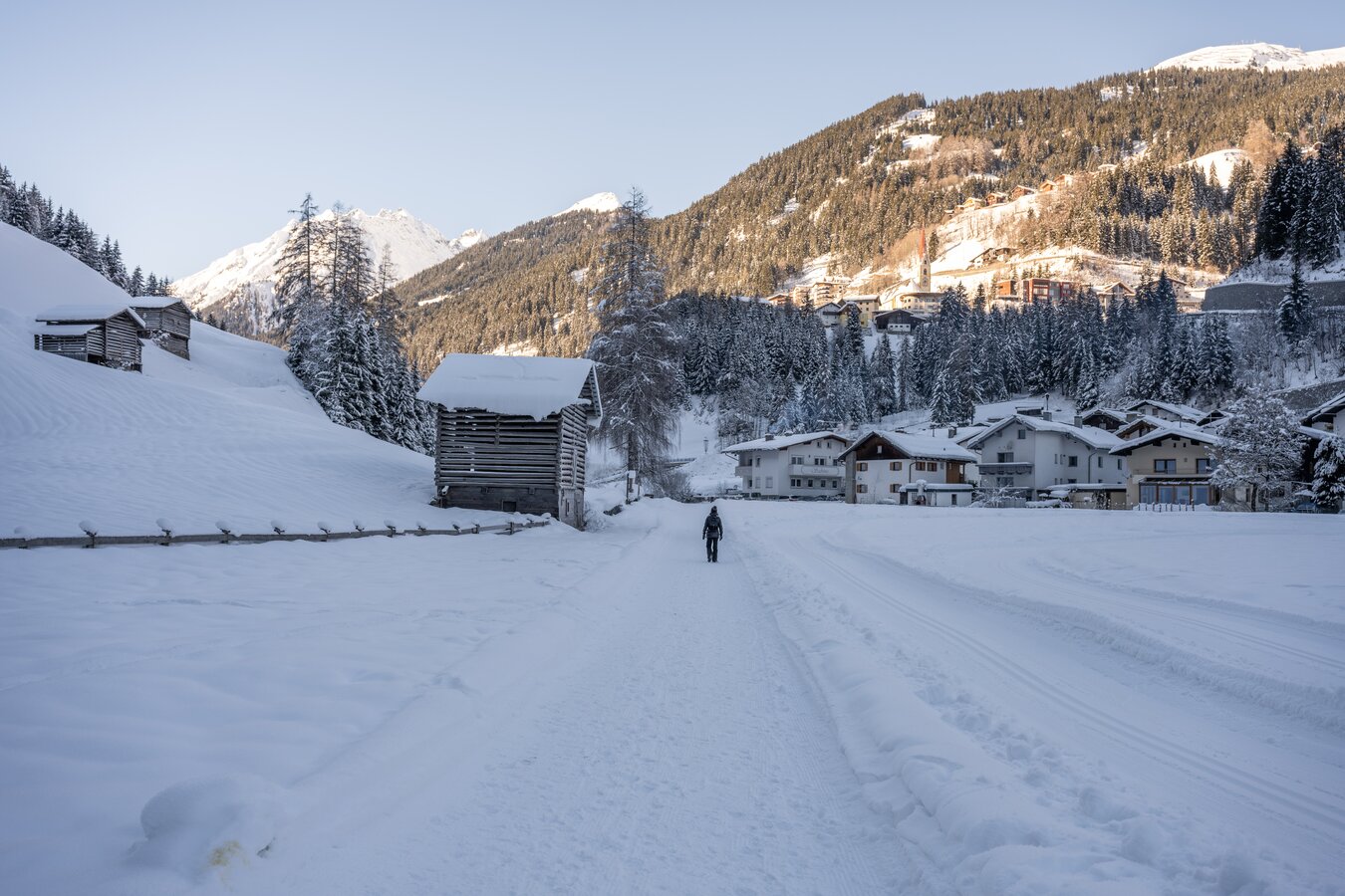 Spaziergang von Samnaun Dorf zum Eisplatz Clis da Ravaisch.