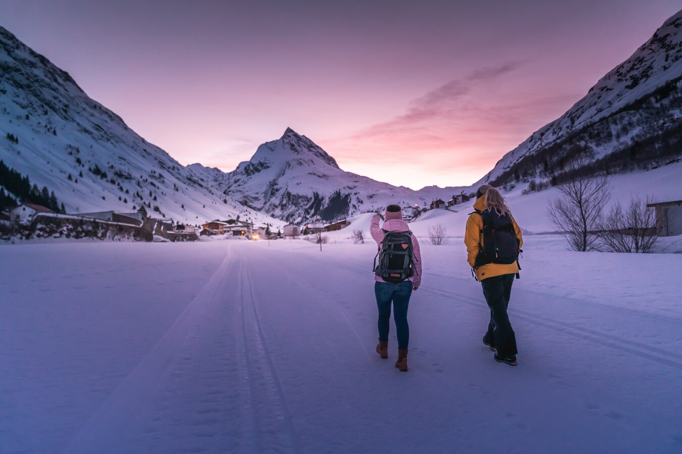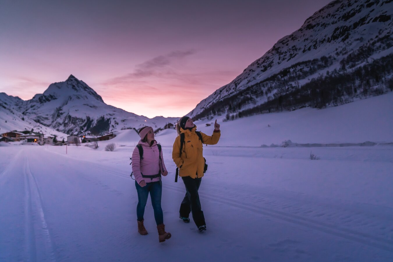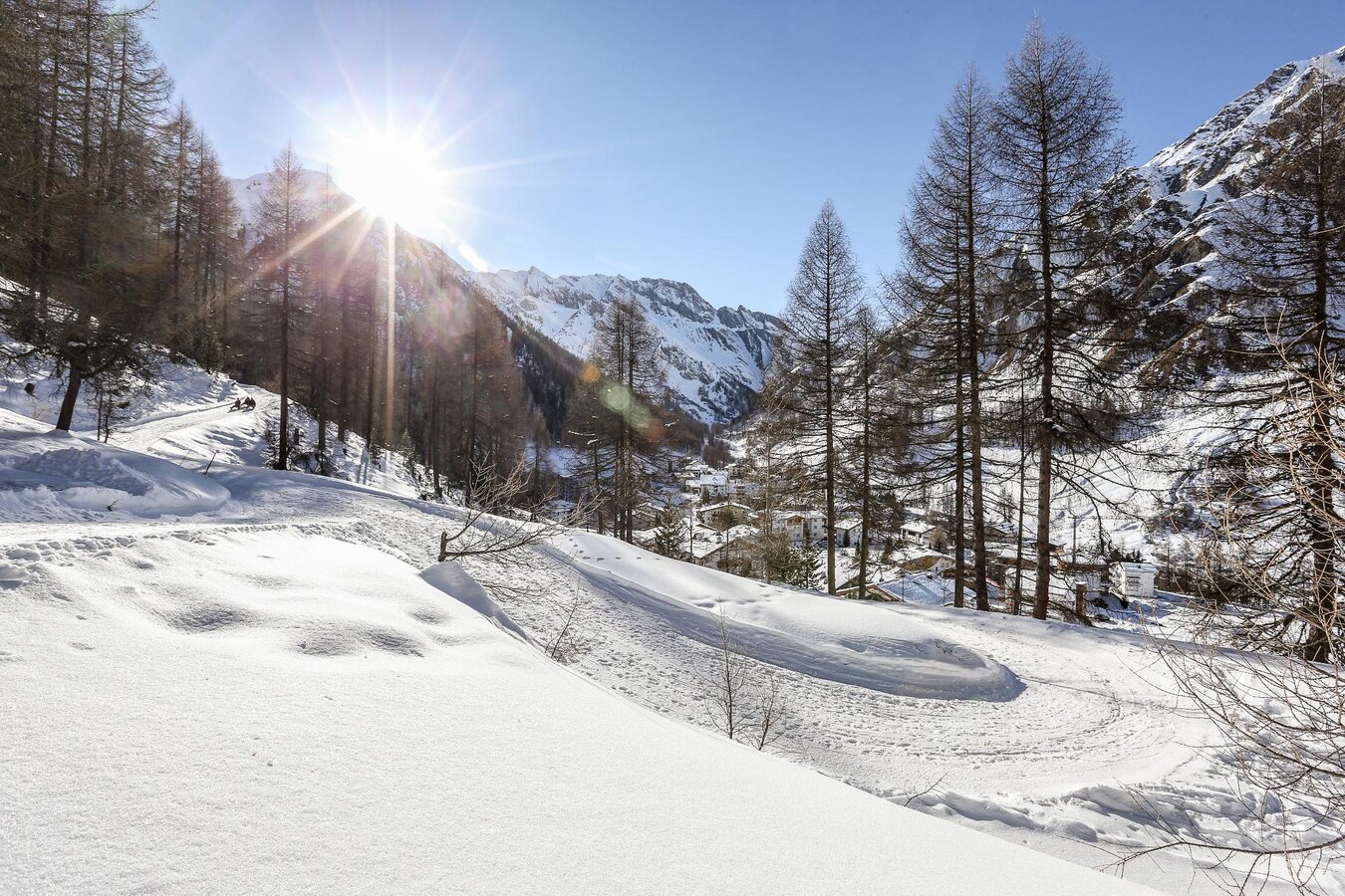 Spaziergang von Samnaun Dorf zum Eisplatz Clis da Ravaisch.