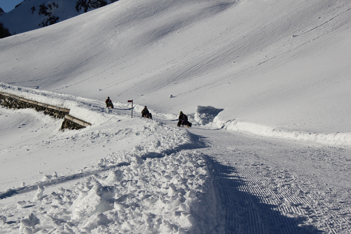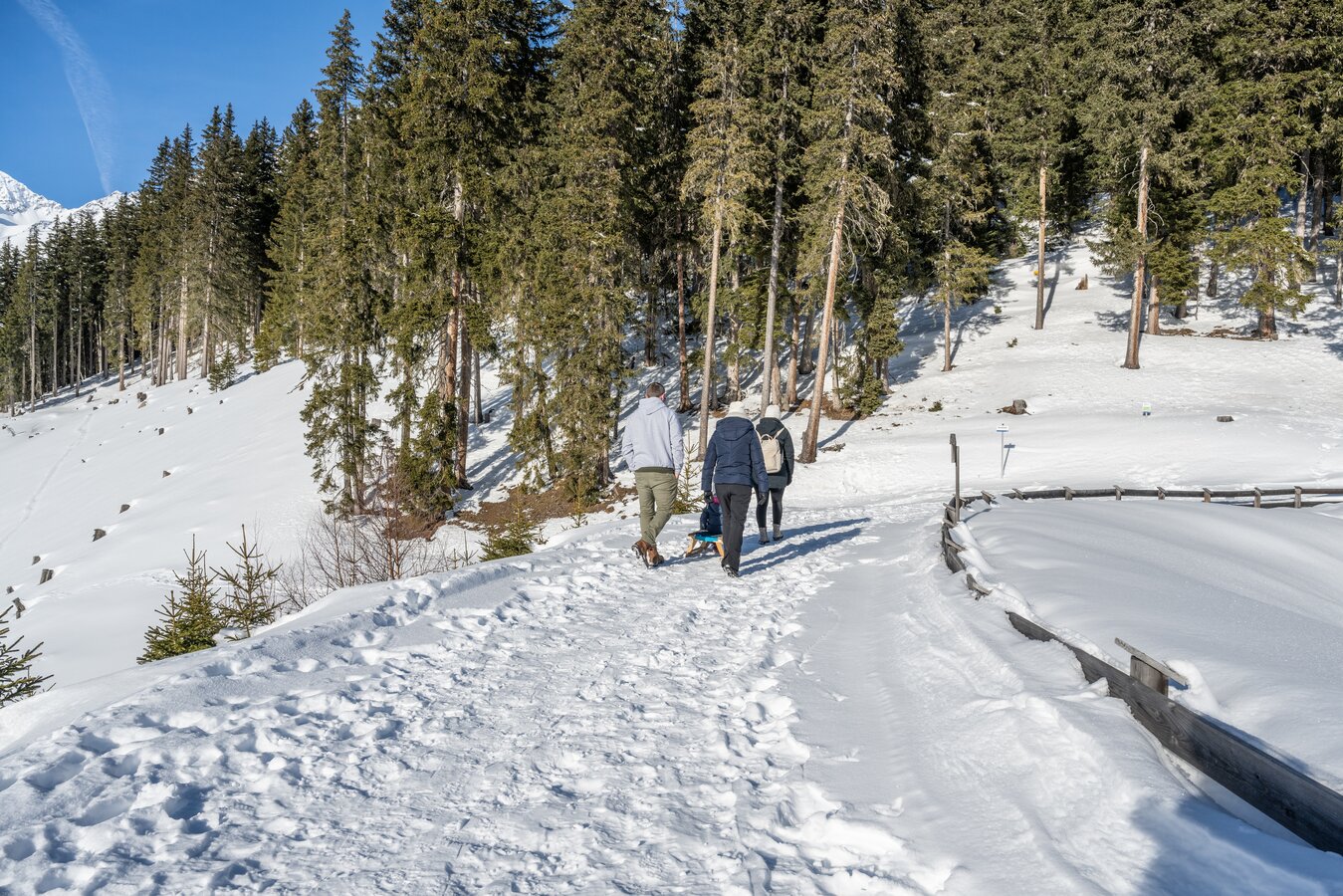 Der Weg wird auch als Schlittelweg genutzt, Schlitten können in den Sportgeschäften gemietet werden.