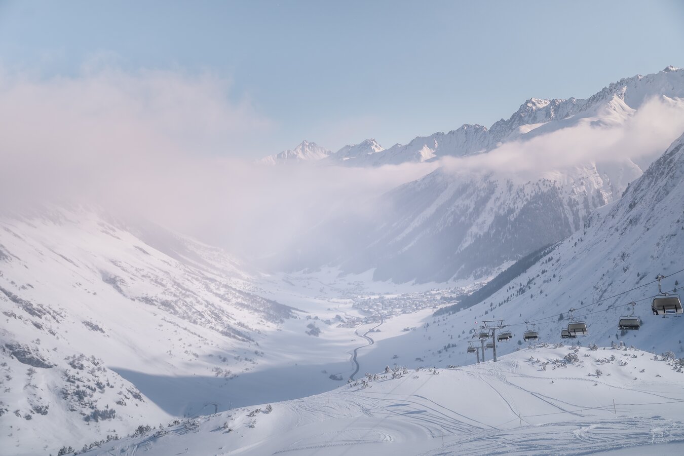 Nach einer kurzen Fahrt mit der Alpkogelbahn erreichst du den Startpunkt des Winterwanderweges Silvapark. Entspanne dich in einem Liegestuhl und genieße die atemberaubende Aussicht. Folge dem markierten Weg ins Tal, vorbei an der Faulbrunn Alm und der Fluchthorn Alm, wo du auf den sonnigen Terrassen Tiroler Köstlichkeiten genießen kannst. Nach der Wanderung durch den Silvapark erreichst du Oberwirl. Von dort kannst du weiter Richtung Galtür wandern.