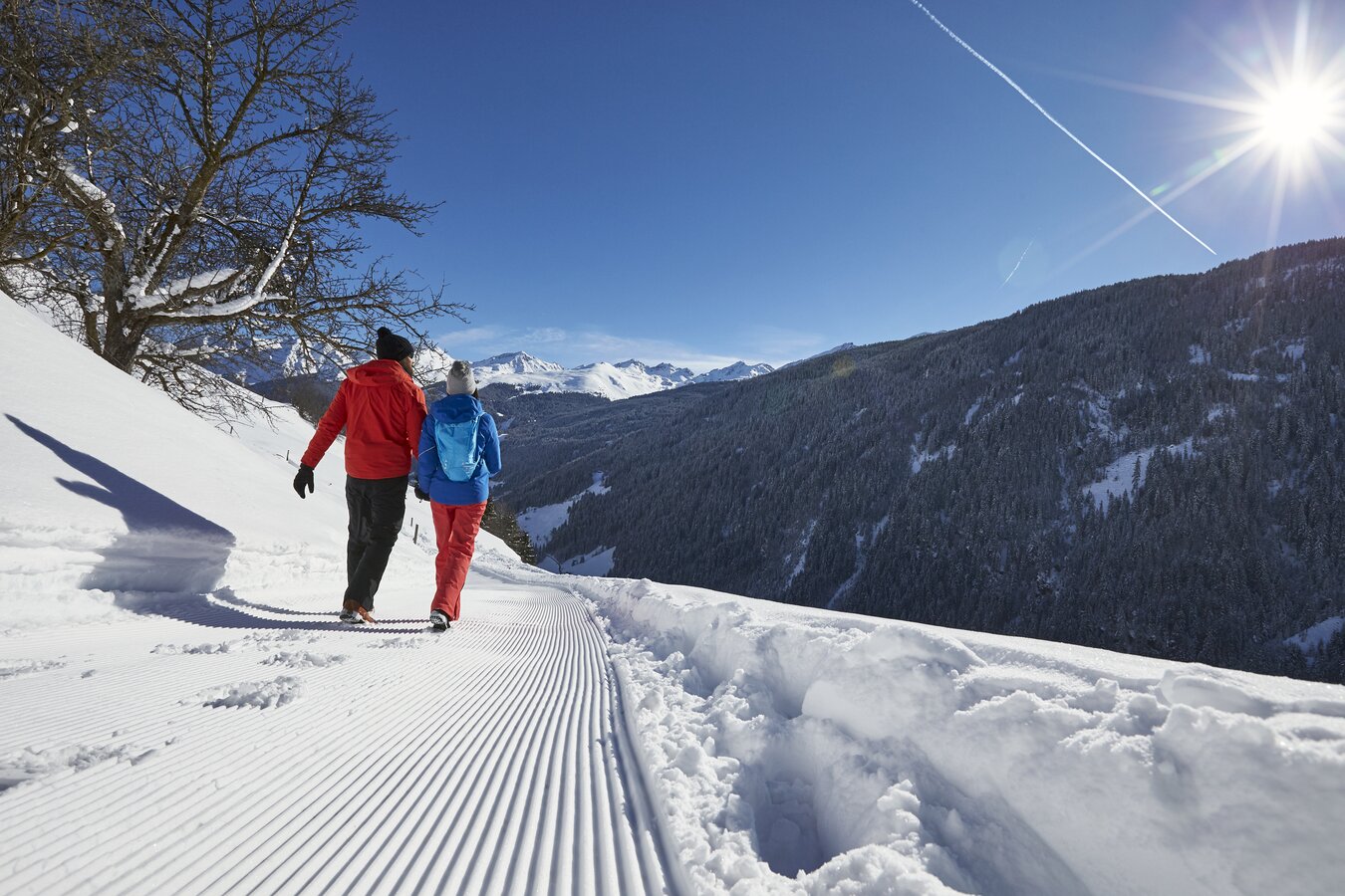 Samnaun: Talwanderweg im Winter