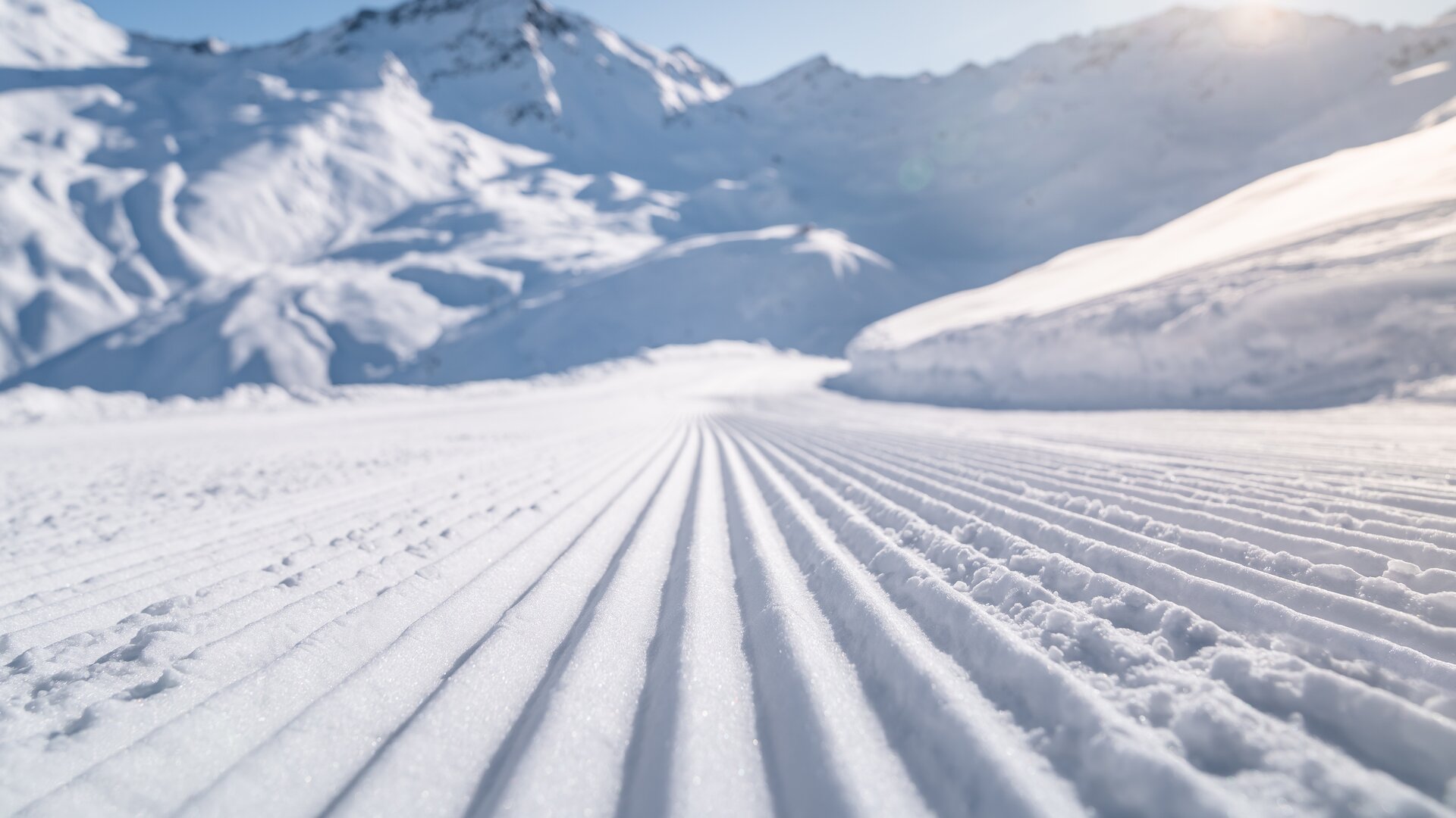 The Fear of Heights begins at the Furglerblick top station at around 2,570 metres. Right at the start, it is worth taking a moment to look back: the panorama stretches across the Silvretta range to the distinctive summit of the Furgler. The run begins with the Furglerblick slope, where wide and clearly visible sections provide the perfect opportunity to gain momentum. The terrain here is still moderate – ideal for easing into the long descent towards the valley.