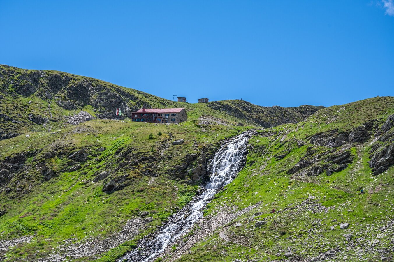towards the northern slope of the mountain range. A downhill trail leads you to the romantic