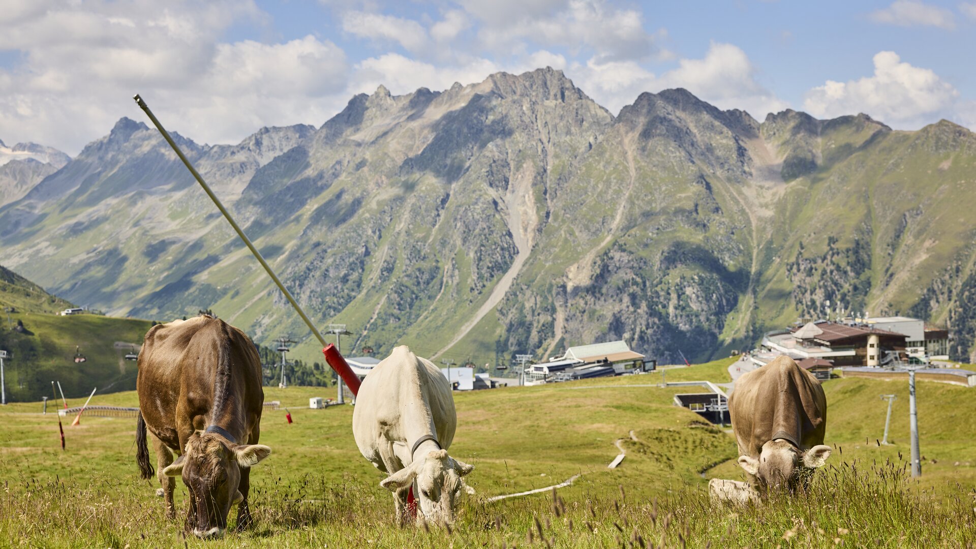In summer, cows take over the slopes of the Silvretta Arena. Used as modern organic alpine pastures, the green areas of the pistes provide space for many animals and thus enable nature-loving alpine farming. Around 200 cows graze on the alpine pastures of the Silvretta Arena on the Idalp, the Paznauner Thaya and the Gampenalp, while around 800 cows from Ischgl and Samnaun spend their summer in the Fimba Valley. Thanks to the new alpine pastures, even more cattle can be kept than before the ski area was opened up - a sign of the successful combination of tourism and traditional alpine farming.