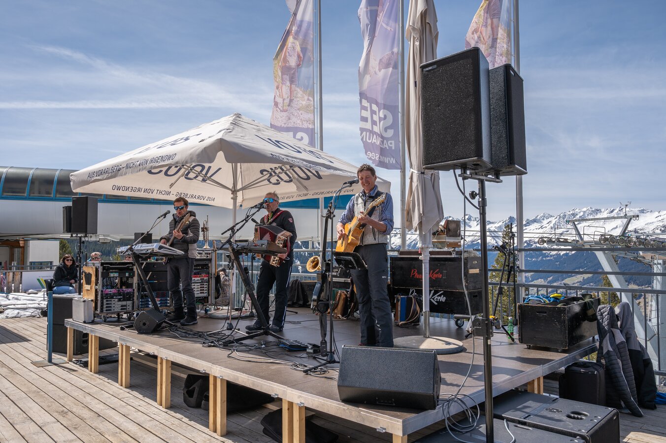 The musical programme kicks off from 11.30 am to 1.30 pm at the Gratli with the band VolksBeat. It continues from 1.00 pm to 3.00 pm at the Ascher Hütte, where Marco Wahrstaetter in a duo will ensure a great atmosphere. The day will draw to a close in style from 2.30 pm to 5.00 pm at the Medrigalm, where the band Oidholz will bring the day’s skiing to a musical close.